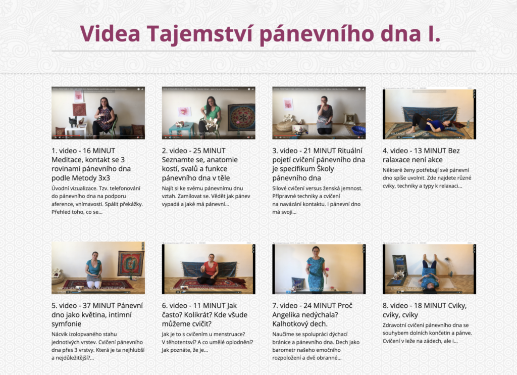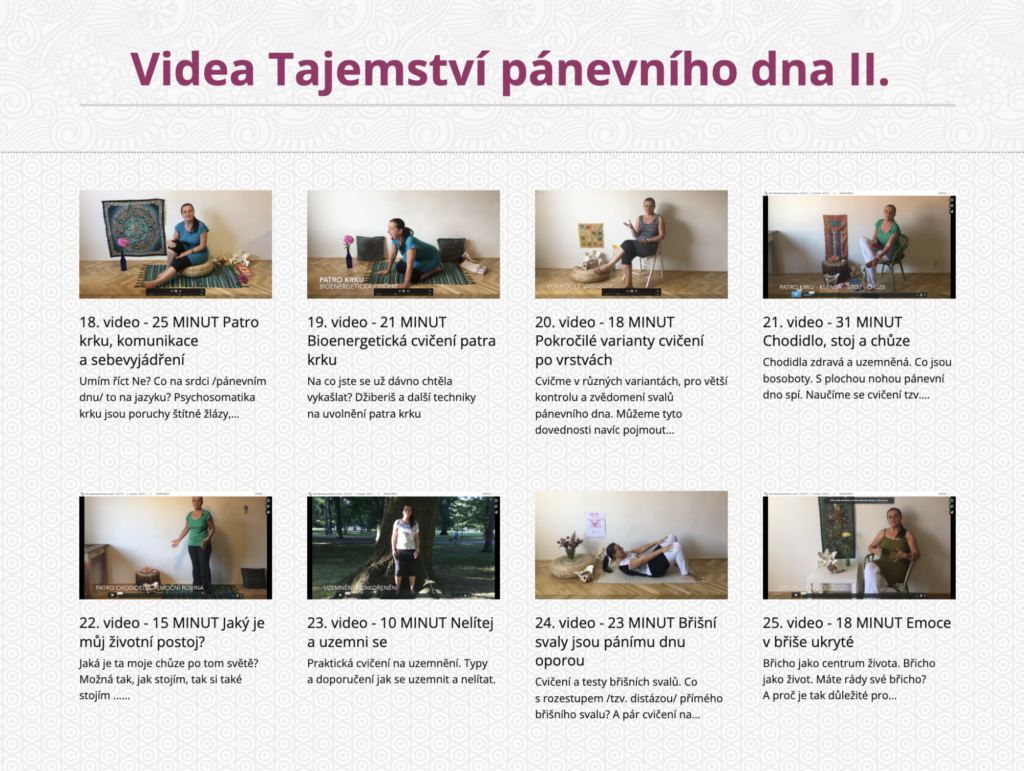 - speciální videa jsou uzavřené členské sekci na webu Školy pánevního dna